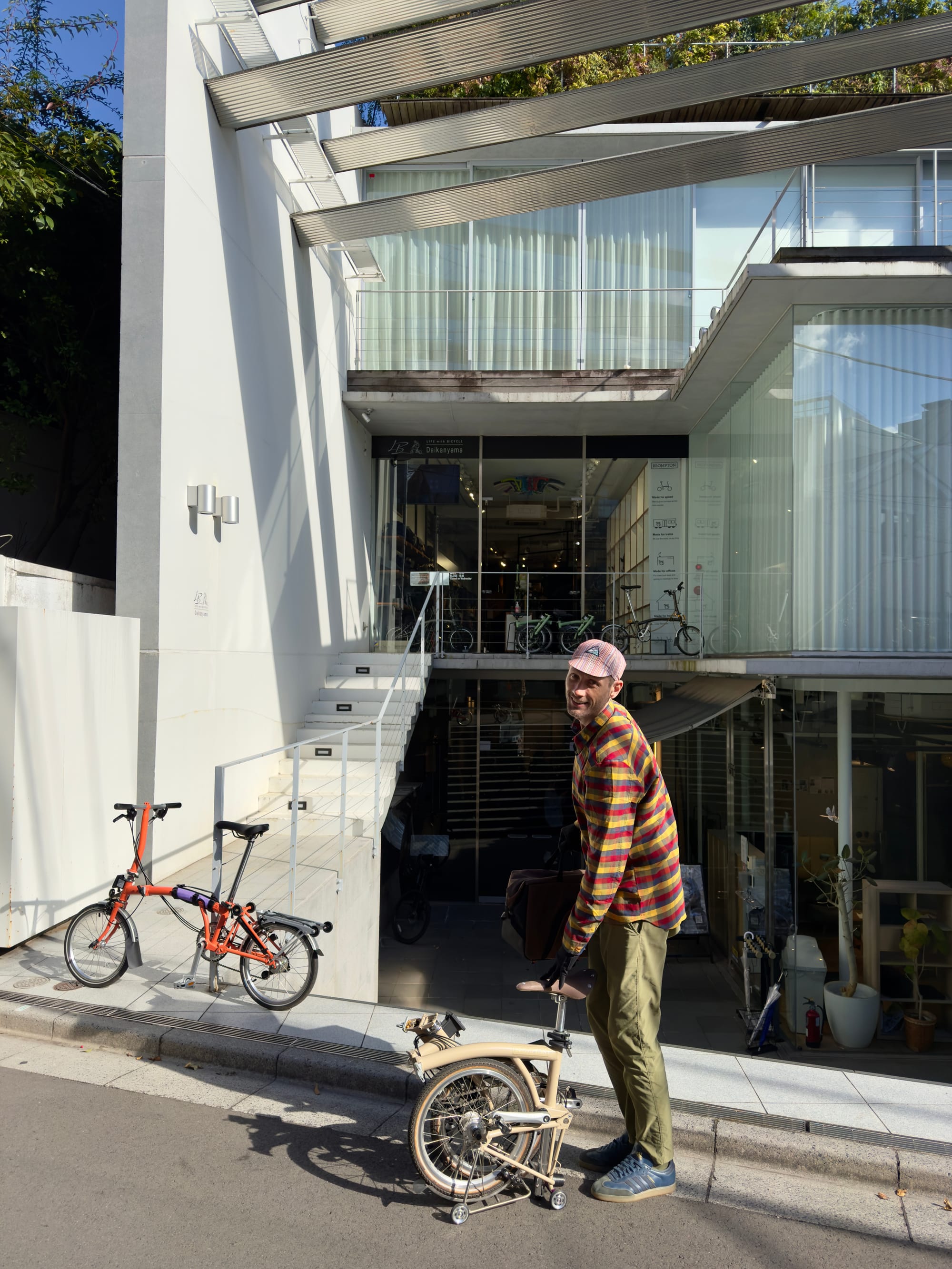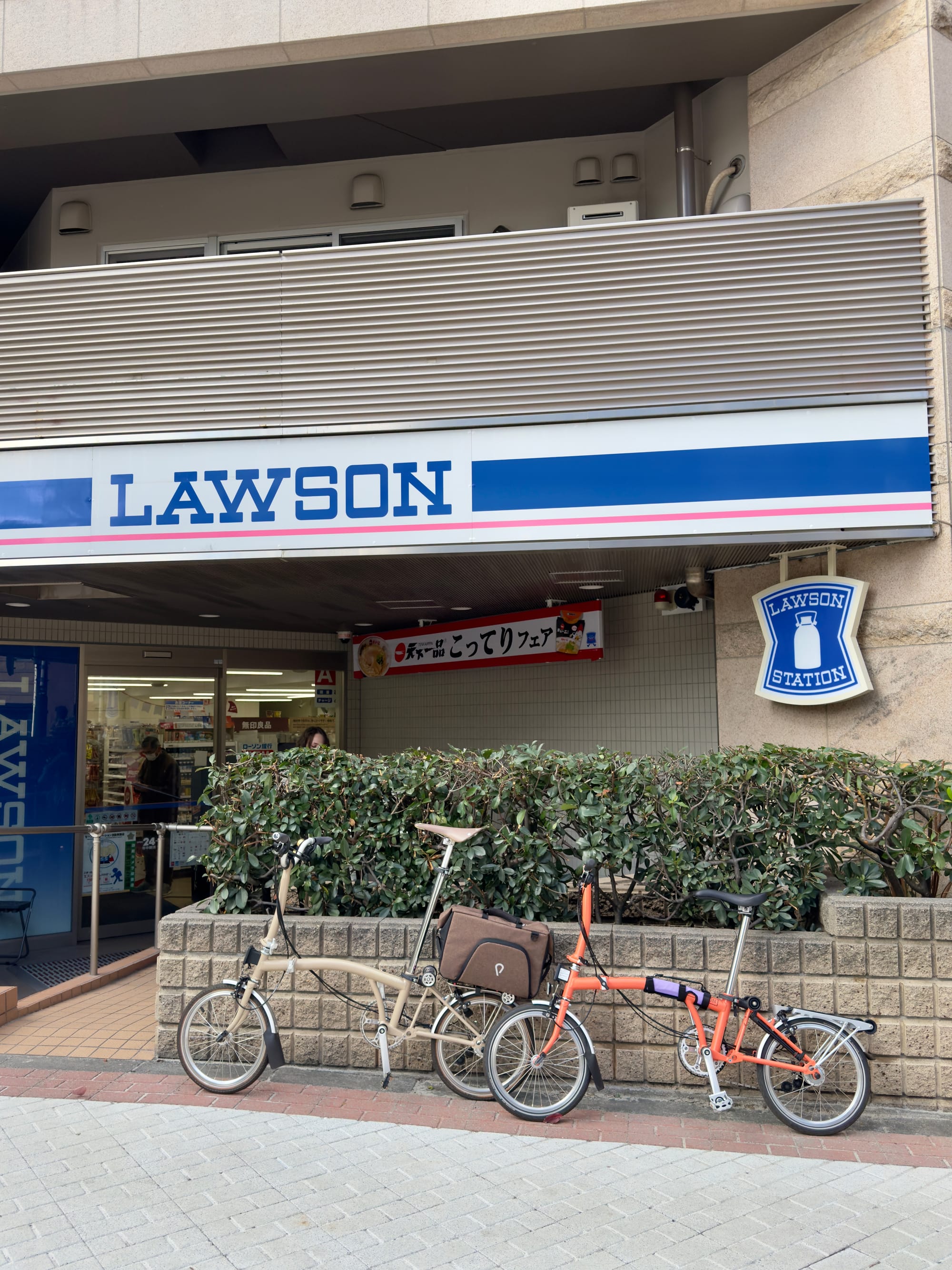 After dropping our bags at our hotel in Asakusa (check-in wasn't until 3:00 p.m.), we jumped on our Bromptons for a konbini (convenience store) breakfast before heading to a bike shop in Daikanyama.