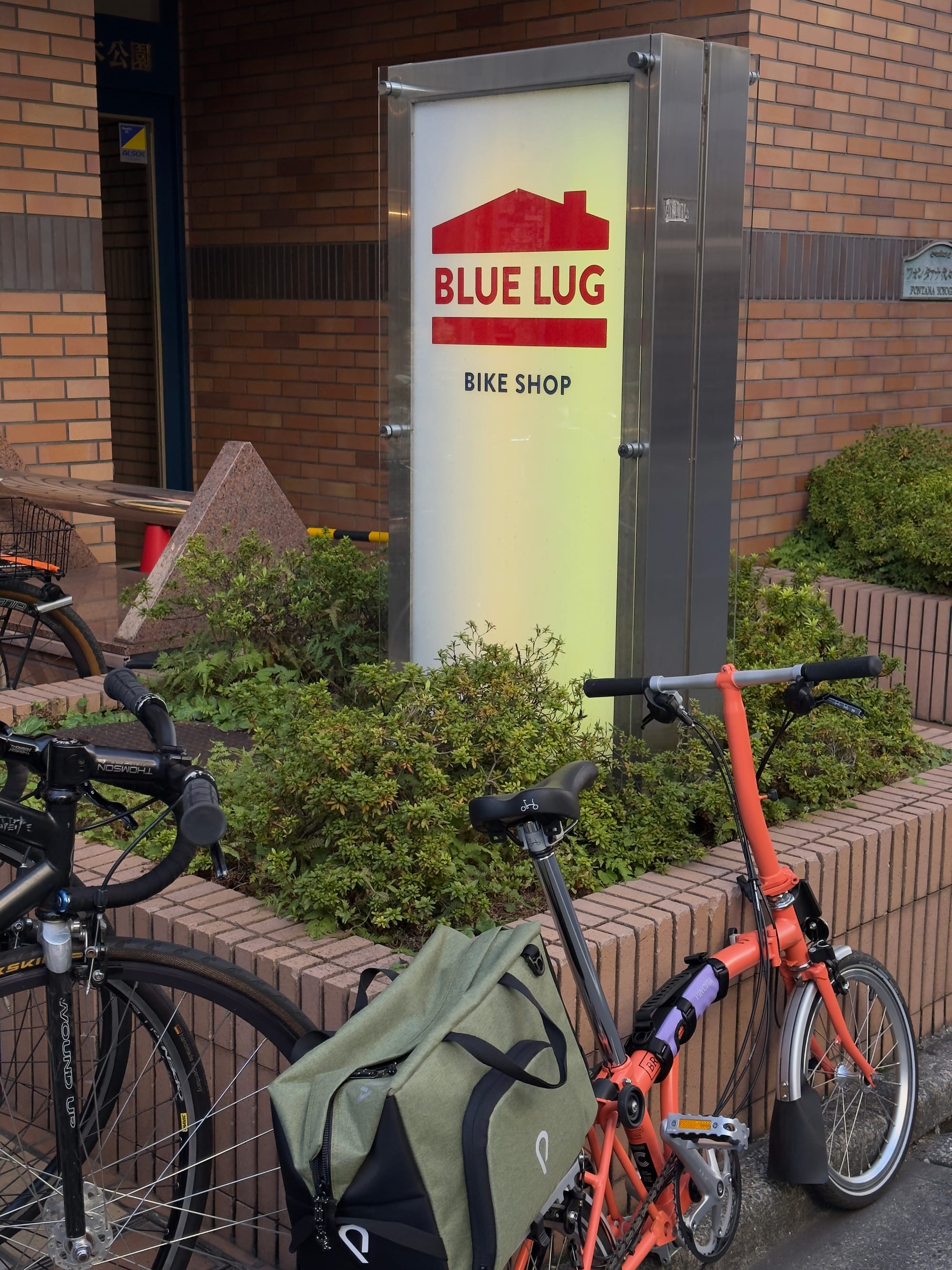 Day two in Tokyo started with a trip to yet another bike store, the world-famous Blue Lug. There are three Blue Lugs in Tokyo and one in Kagoshima; we went to the one near Yoyogi Park. Matt went to town with stickers, and I bought a new Brooks C17 carved saddle in burnt orange, which was slightly indulgent but necessary for a comfortable two weeks ahead. As a female cyclist, I absolutely swear by carved saddles.