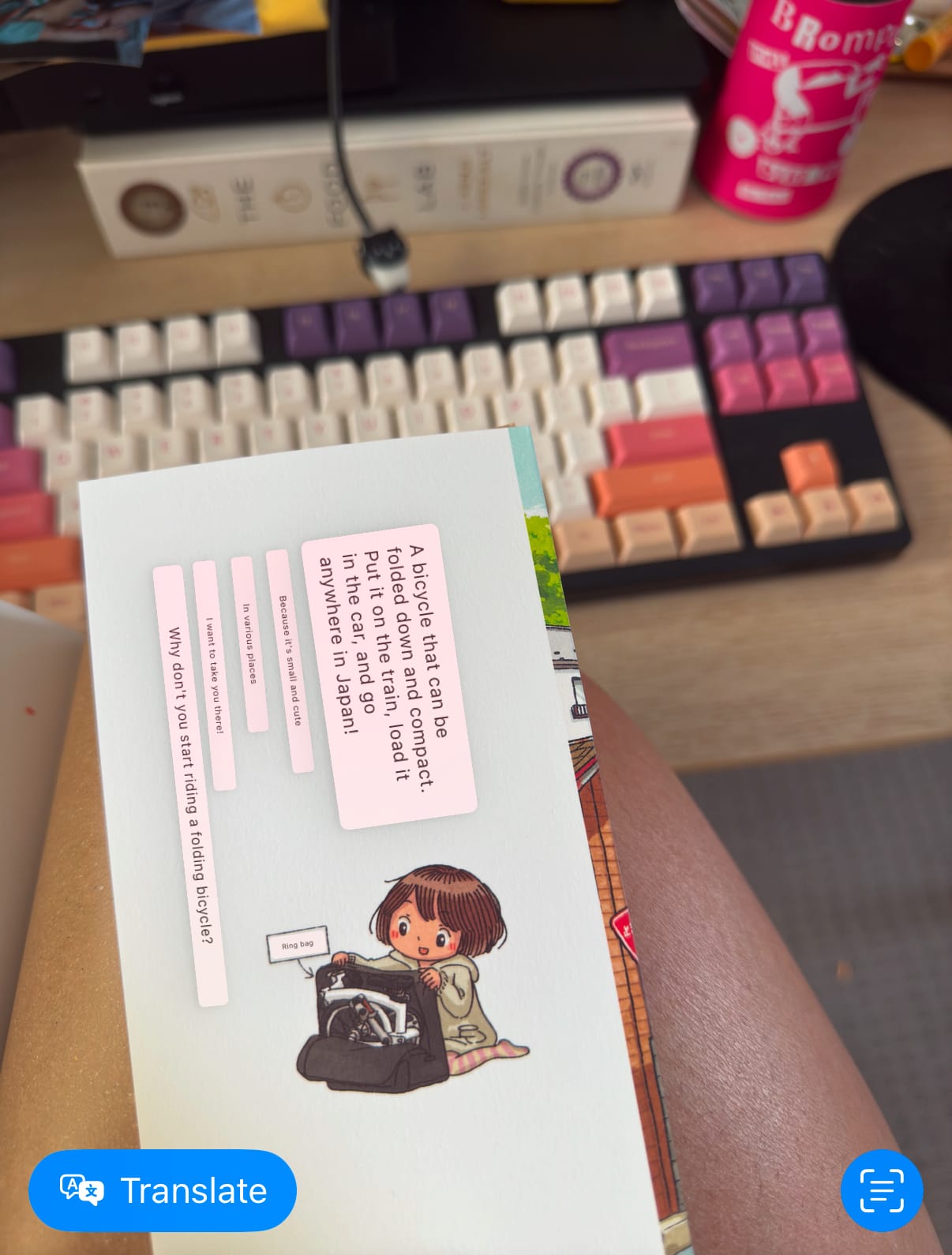 Life with Bicycle specialises in Bromptons, Brompton-related accessories, and components. I managed to somehow restrain myself from buying any accessories and settled on a manga by illustrator Saeko Hoshii. "I started using a folding bicycle" is a story about a woman getting frustrated with her desk job and house chores, and dreams of cycling to bakeries, rivers, and onsens around Japan with her dog. A flawless depiction of my ideal life, really.